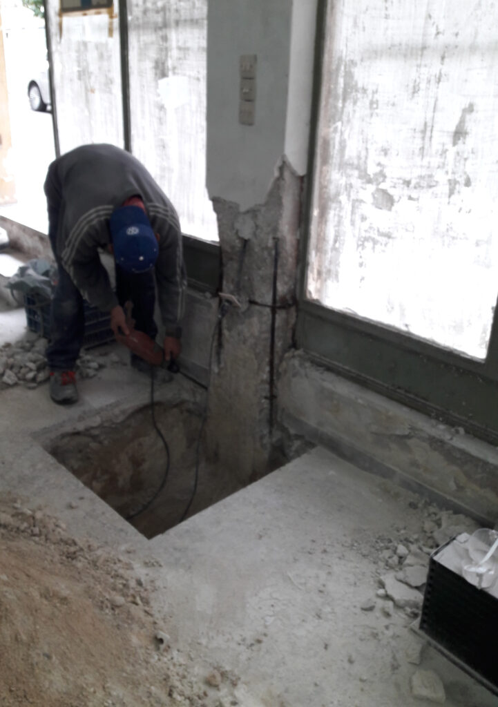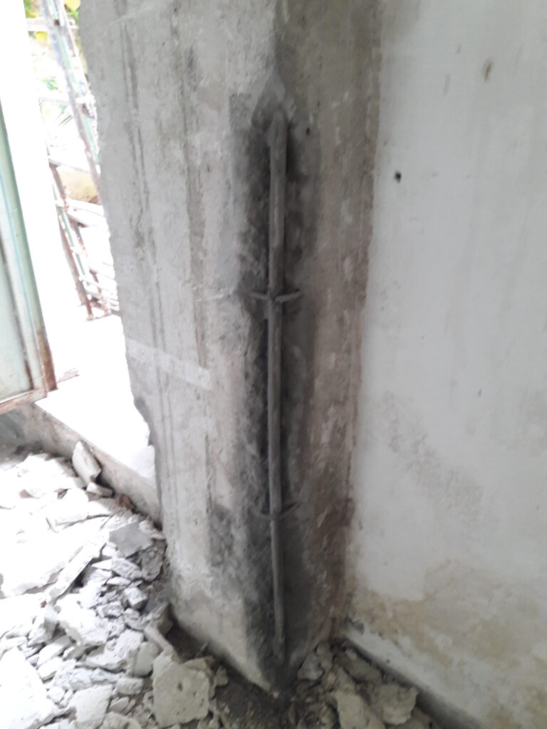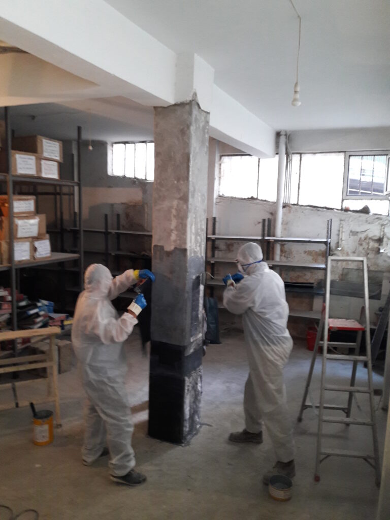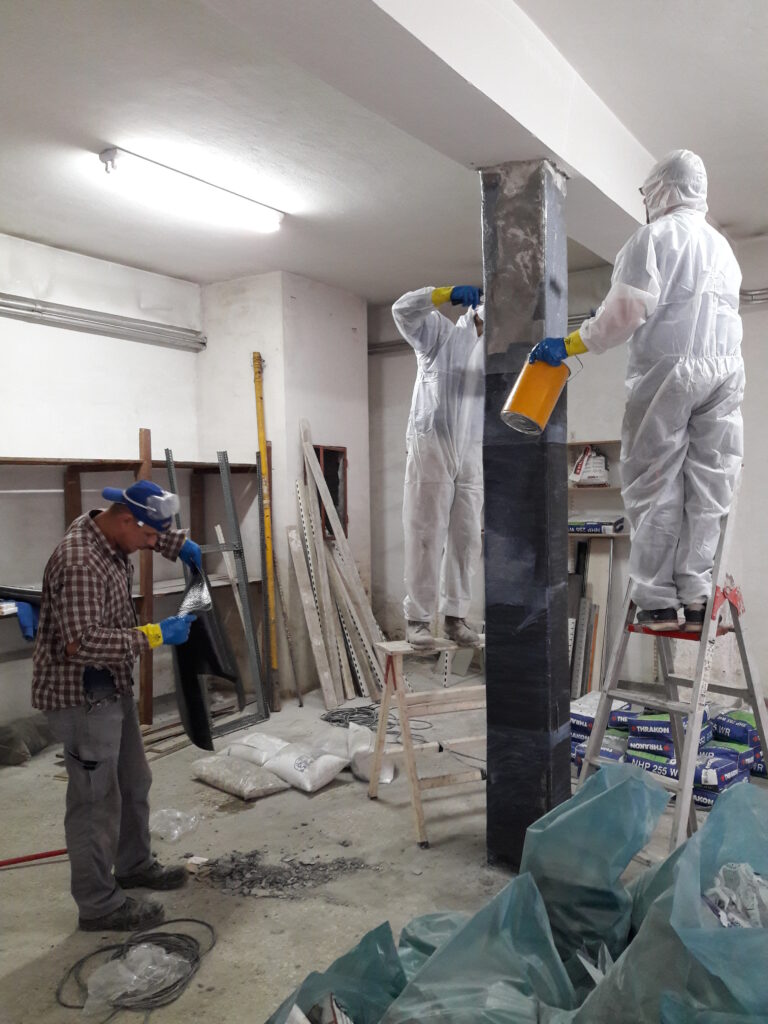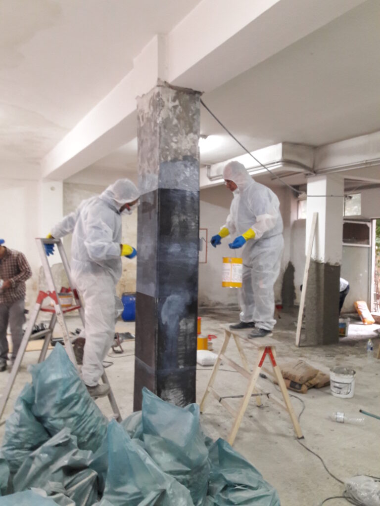 Επισκευή 29 υποστυλωμάτων και δοκών στο Ισόγειο και σε ενδιάμεσους ορόφους της πολυκατοικίας.