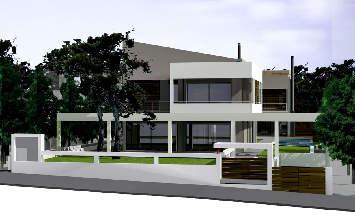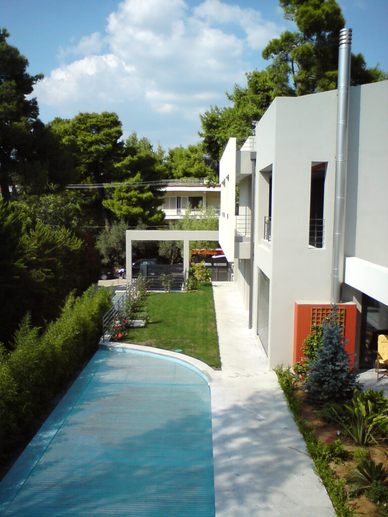 Δύο διώροφες κατοικίες με υπόγειο και πισίνα.