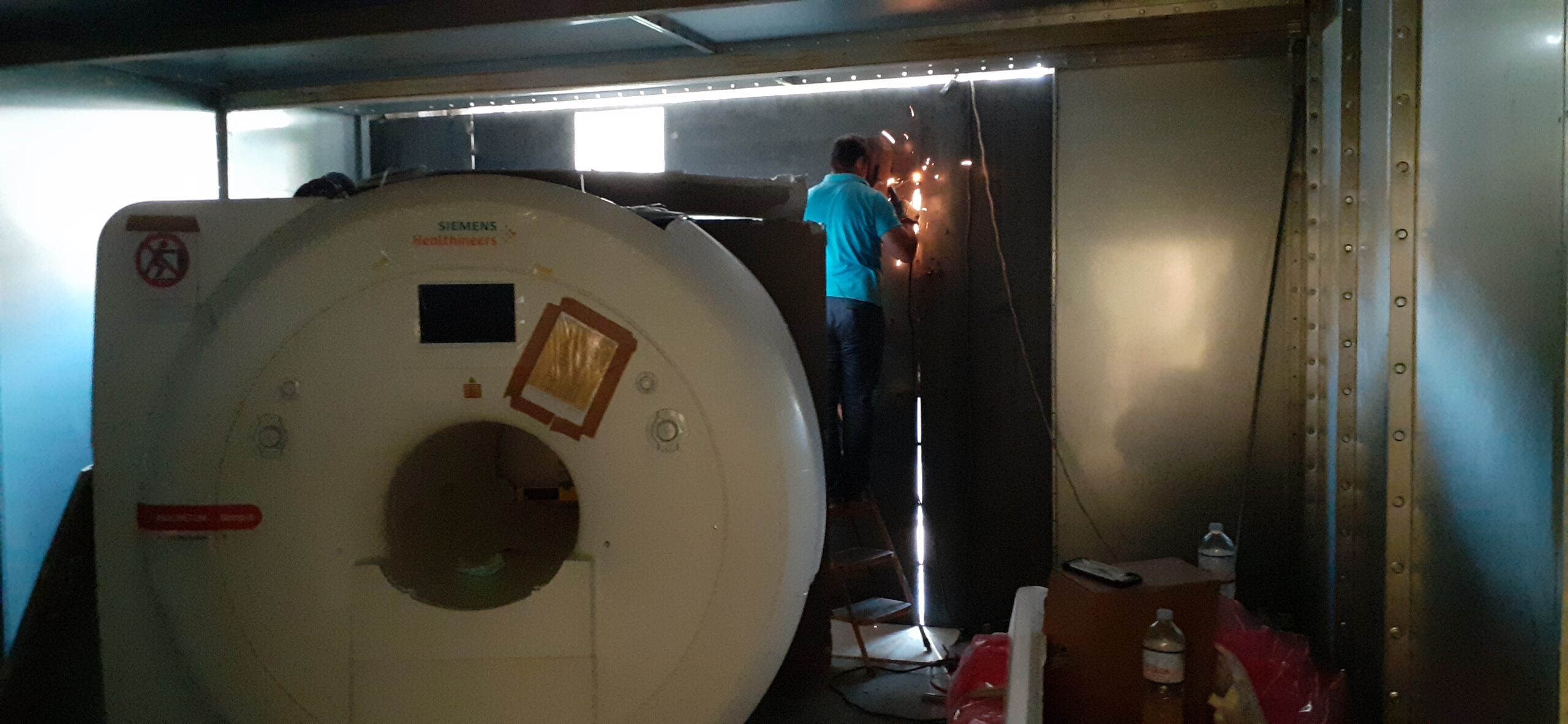 Εγκατάσταση κλωβού RF (Faraday) και χαλύβδινων πλακών αντιμαγνητικής θωράκισης του χώρου.